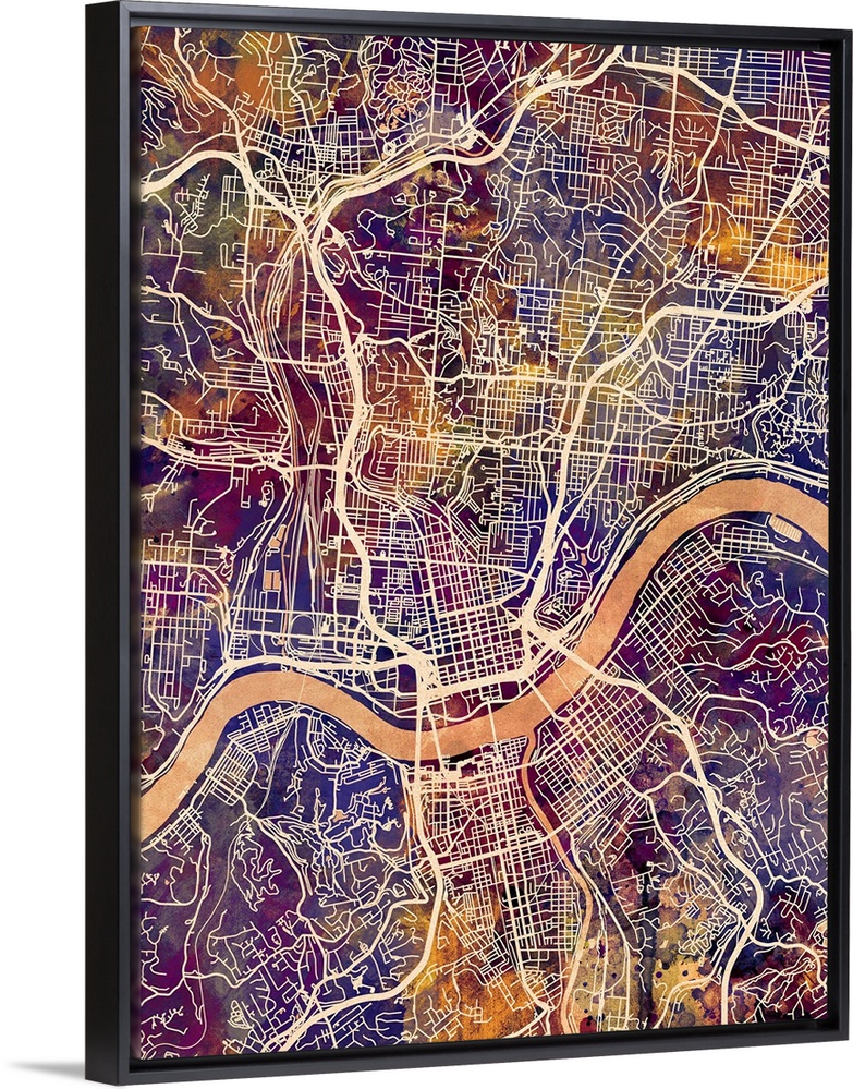 <p>Watercolor street map of Cincinnati, Ohio, United States</p>