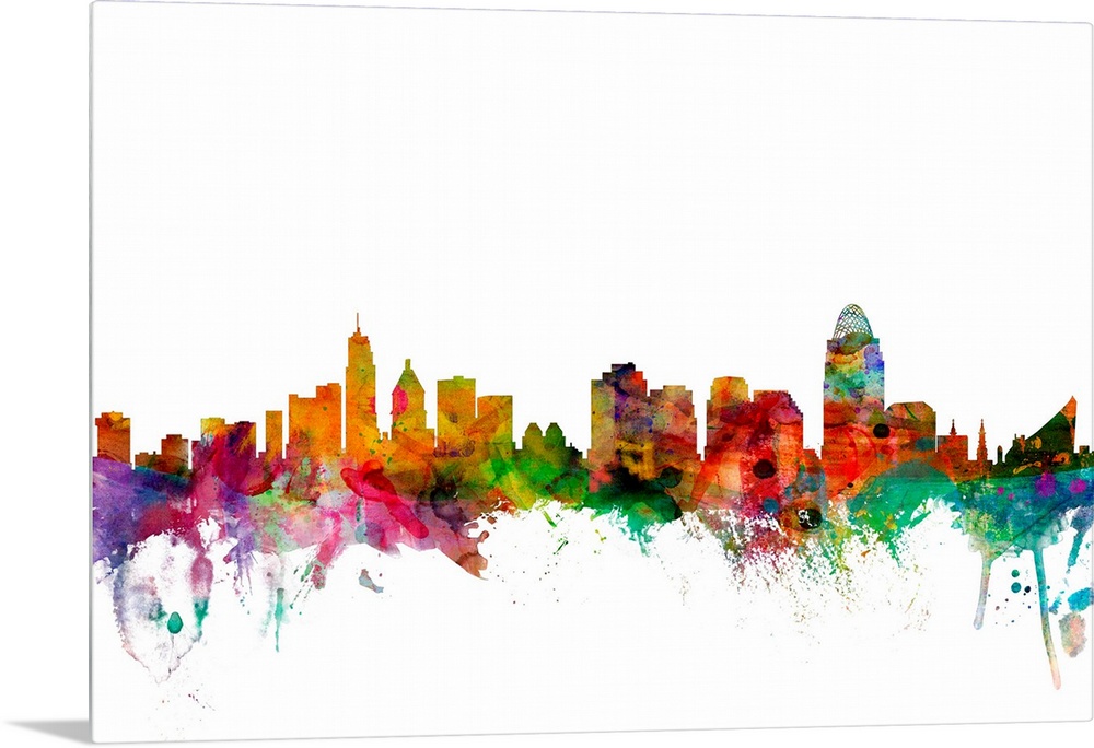 <p>Watercolor artwork of the Cincinnati skyline against a white background.</p>