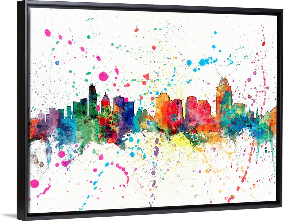 <p>Wild and vibrant paint splatter silhouette of the Cincinnati skyline.</p>