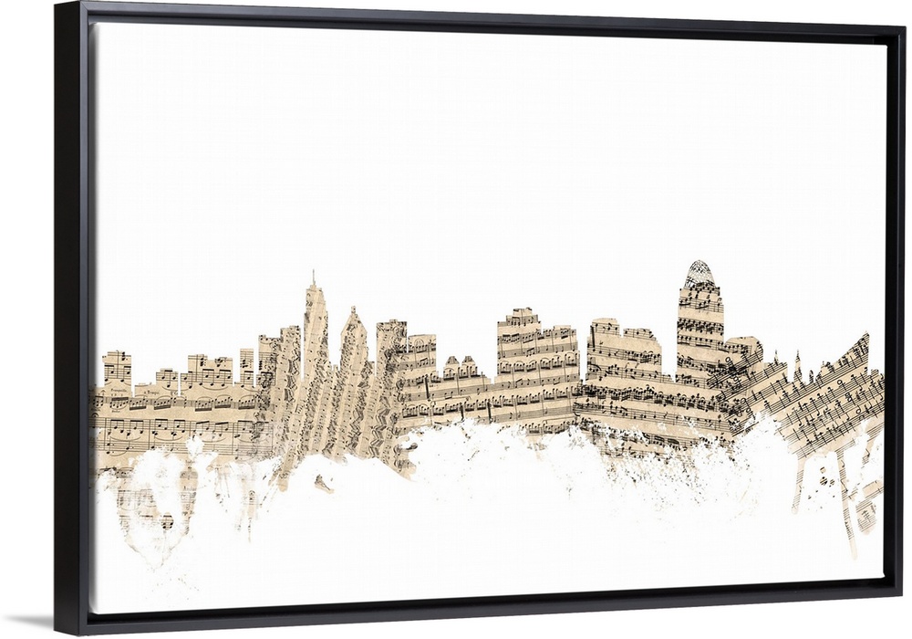 <p>Cincinnati skyline made of sheet music against a white background.</p>