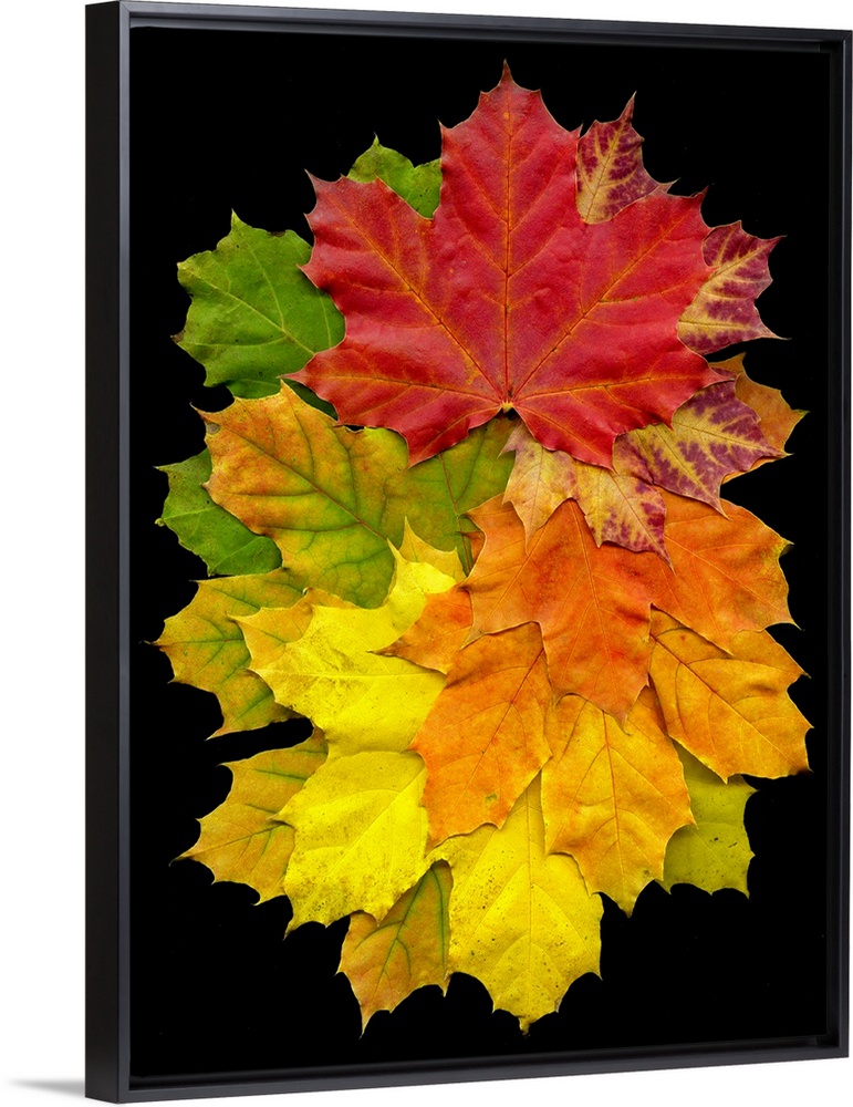 <p>A collection of fall leaves in a variety of colors including red, green, yellow, and orange.</p>