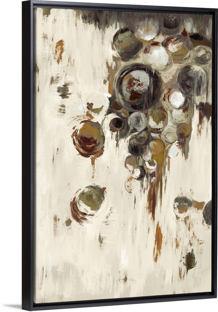 <p>Home decor abstract artwork of dark dingy green circles of different sizes against a neutral background.</p>