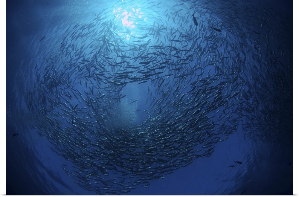 <p>Circling school of Jack's Trevally above Liberty Wreck, Bali.</p>