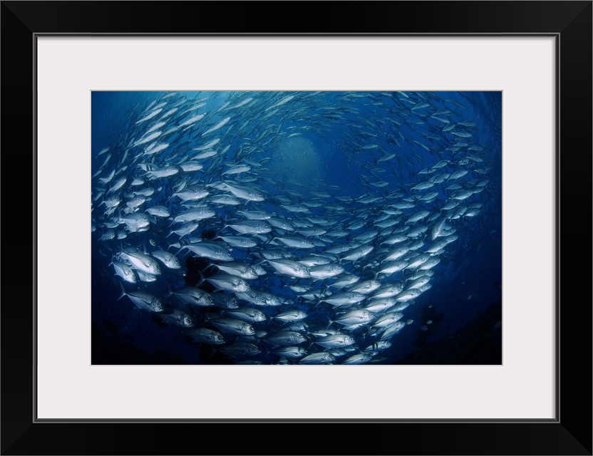 <p>Circling school of Jack's Trevally above Liberty Wreck, Bali.</p>