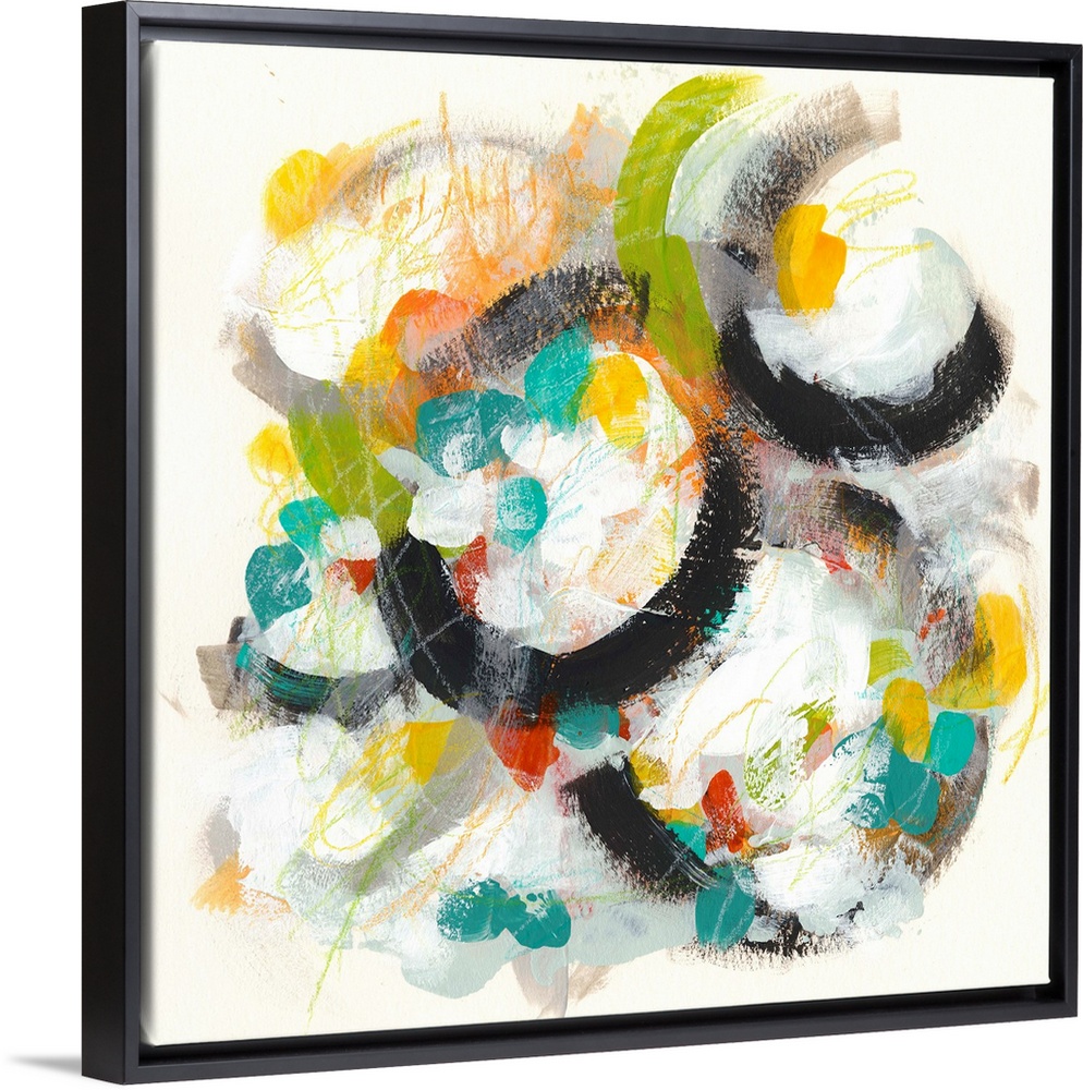 <p>Contemporary abstract painting using vibrant colors and circular shapes.</p>