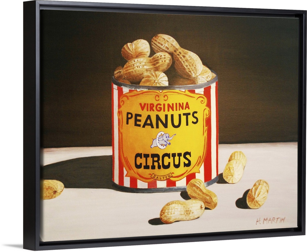 <p>Fine art oil painting of circus peanuts in a tin can sitting atop a table in this beautiful still life by Heidi Martin.</p>