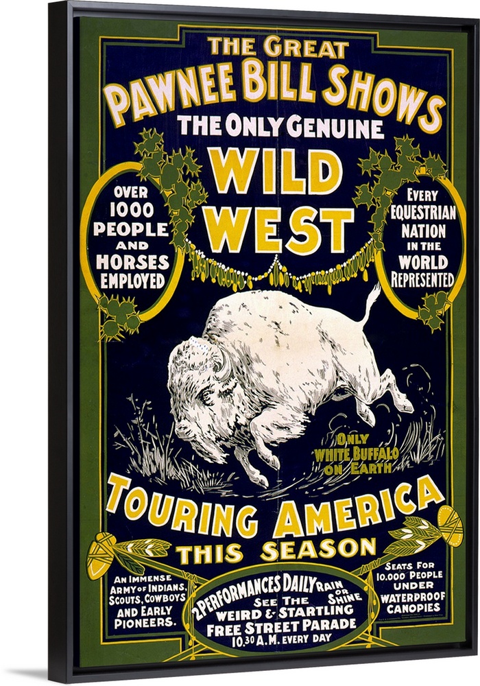 <p>The Great Pawnee Bill shows. The only genuine wild west. Touring America . Circus poster with white buffalo in middle. c1903</p>