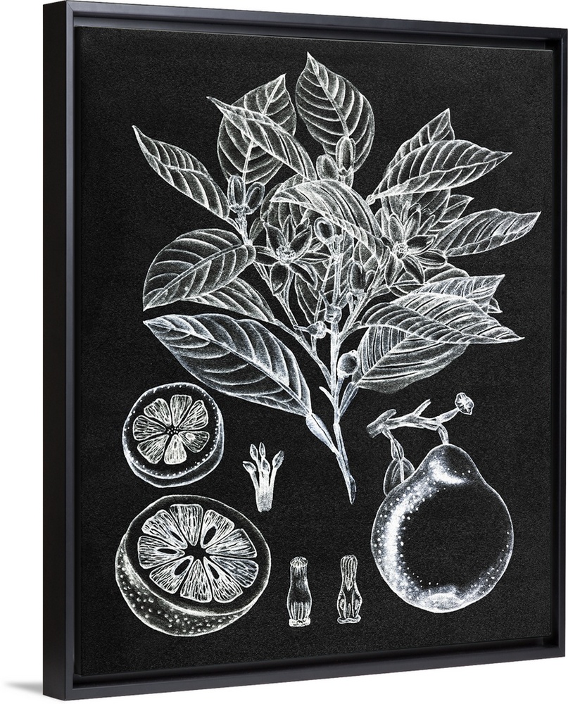 Art Traditional Black and White Wall Art Charcoal, Onyx, and Ivory Decorative Art Drawing Florals Leaves Food and Drink Food Fruit Lemons and Limes Illustrations Melissa Wang