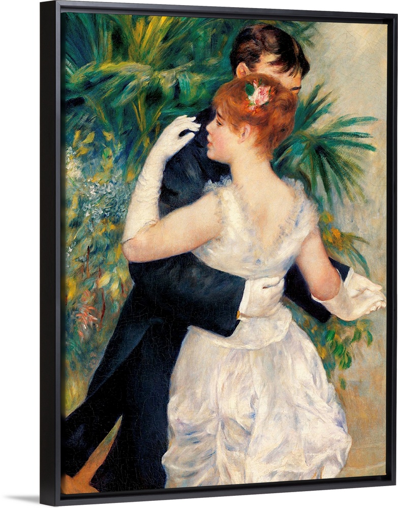 <p>City Dance, by Pierre-Auguste Renoir, 1883, 19th Century, oil on canvas, cm 180 x 90 - France, Ile de France, Paris, Muse dOrsay, RF. 1978-13. Detail. Dance city plant kentia pink white black green brown gloves dress. (110050) Everett Collection\Mondadori</p>