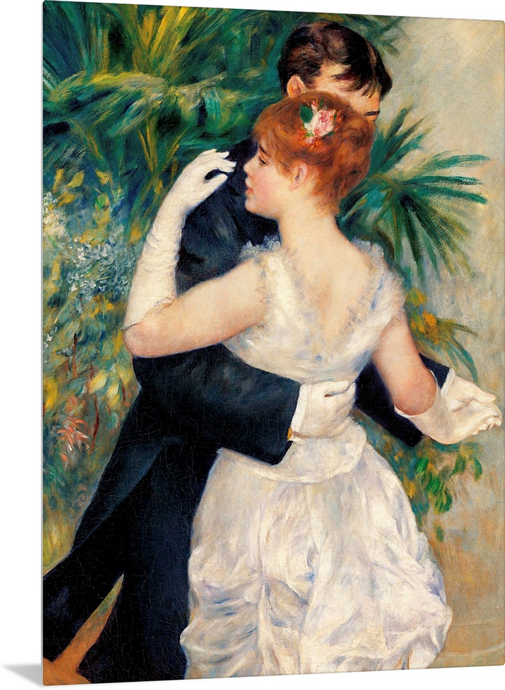 <p>City Dance, by Pierre-Auguste Renoir, 1883, 19th Century, oil on canvas, cm 180 x 90 - France, Ile de France, Paris, Muse dOrsay, RF. 1978-13. Detail. Dance city plant kentia pink white black green brown gloves dress. (110050) Everett Collection\Mondadori</p>