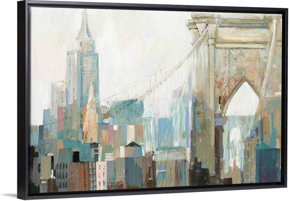 <p>Contemporary painting of the view of Manhattan from the Brooklyn Bridge.</p>