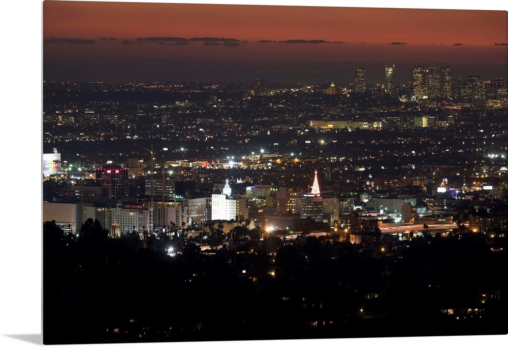 <p>City lit up at dusk, Hollywood, Los Angeles, California, USA</p>