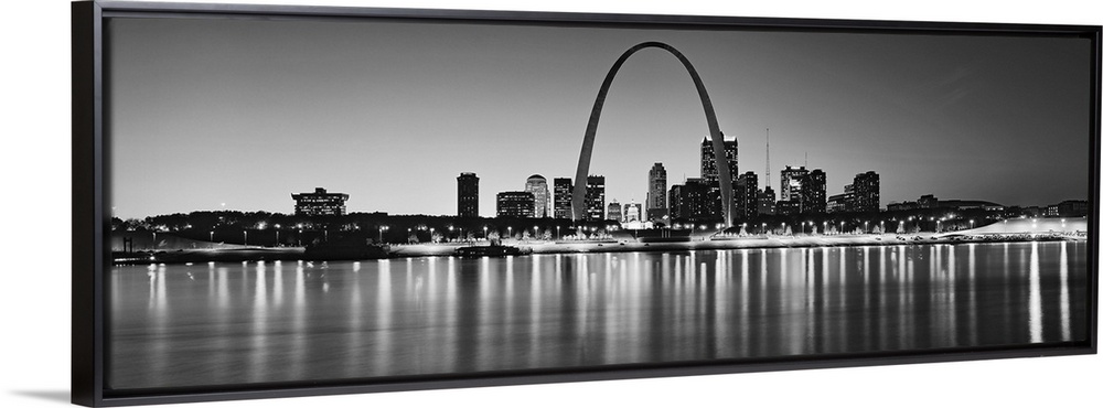 <p>Panoramic photo on canvas of the St. Louis skyline at night.</p>