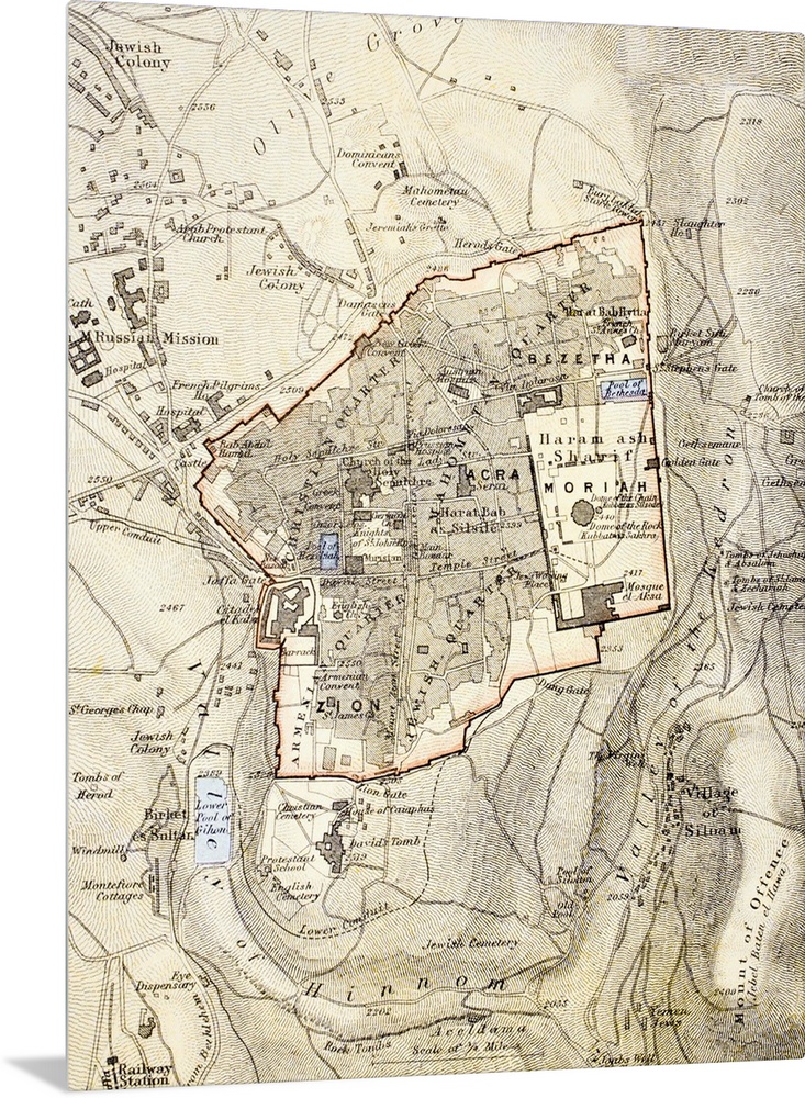 <p>City map of Jerusalem in the 1890s. From The Citizen's Atlas of the World published in London, circa 1899.</p>