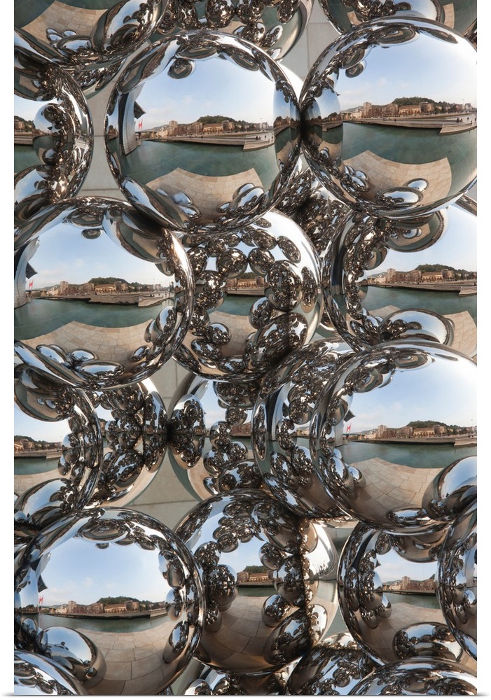 <p>City reflection in chrome spheres, Bilbao, Biscay Province, Basque Country Region, Spain</p>
