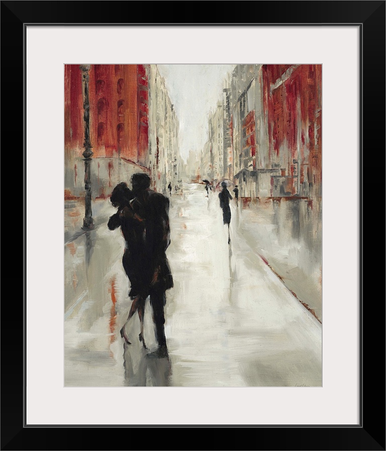 <p>Contemporary home decor painting of a silhouetted people in a loving embrace.</p>