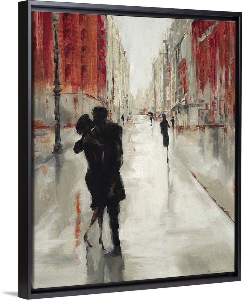 <p>Contemporary home decor painting of a silhouetted people in a loving embrace.</p>