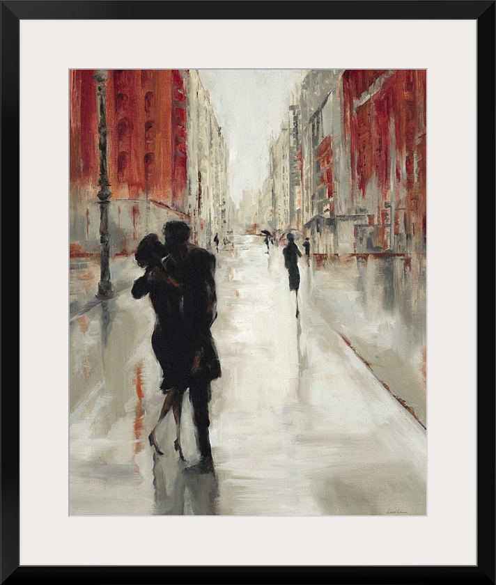 <p>Contemporary home decor painting of a silhouetted people in a loving embrace.</p>