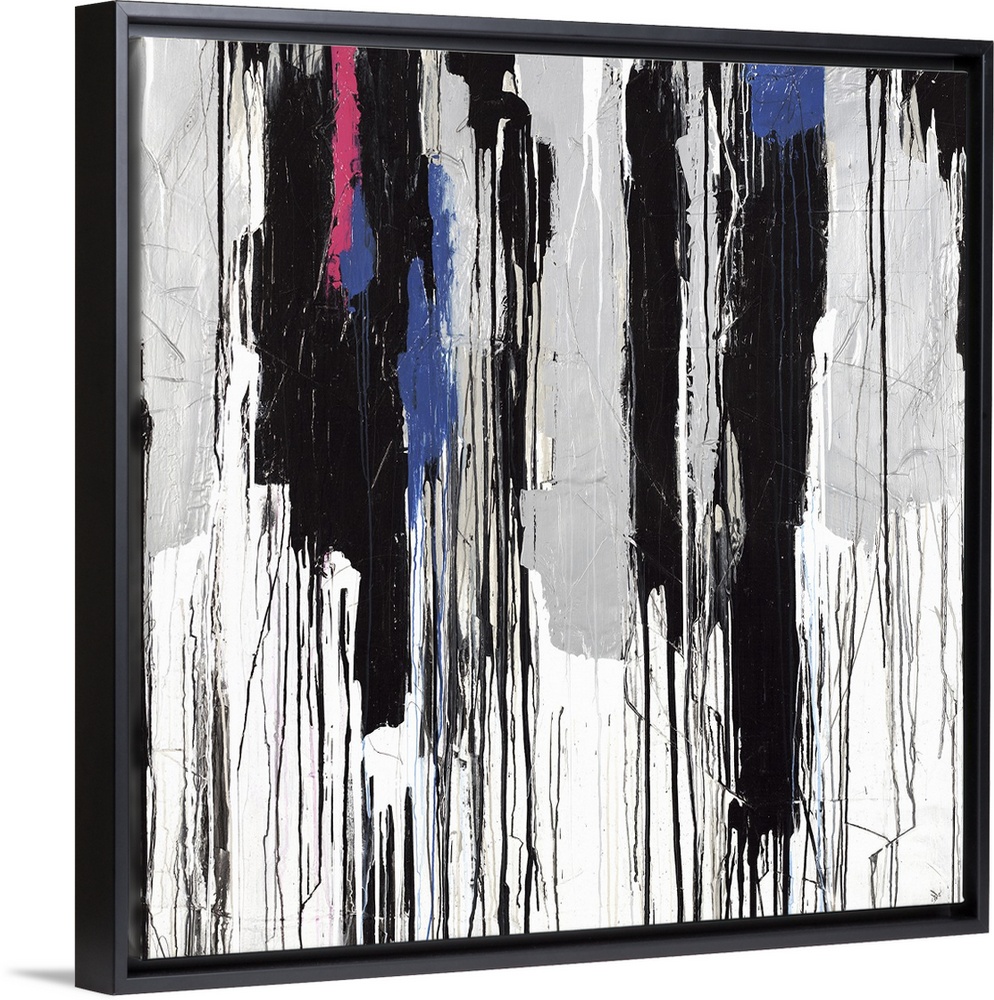 <p>Square abstract art with dripping hues of gray, black, blue, and pink, starting thick at the top and thinning out towards the bottom.</p>
