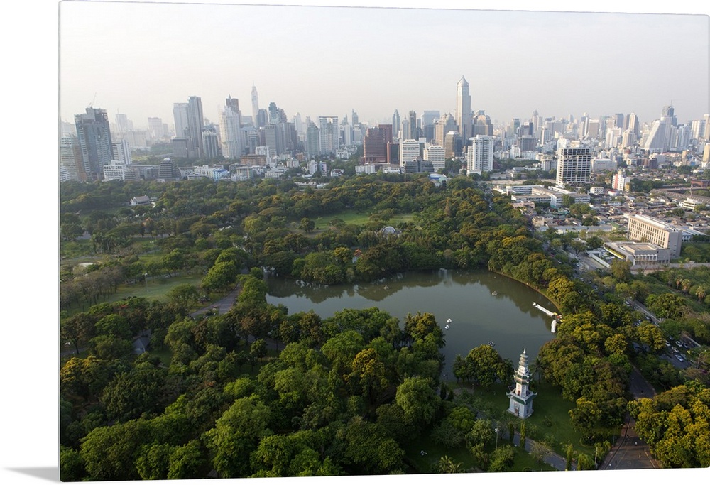 <p>City skyline with Lumphini Park, the Green Lung of Bangkok, in the foreground, from the roof of Hotel Sofitel So, Sathorn Road, Bangkok, Thailand, Southeast Asia, Asia.</p>