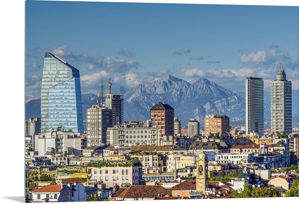 <p>City skyline with the Alps in the background, Milan, Lombardy, Italy</p>