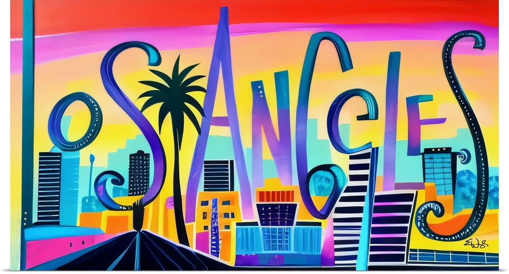 Art Cityscapes Graphic Art Multicolor Wall Art California Los Angeles Typography & Calligraphy Eric Waugh