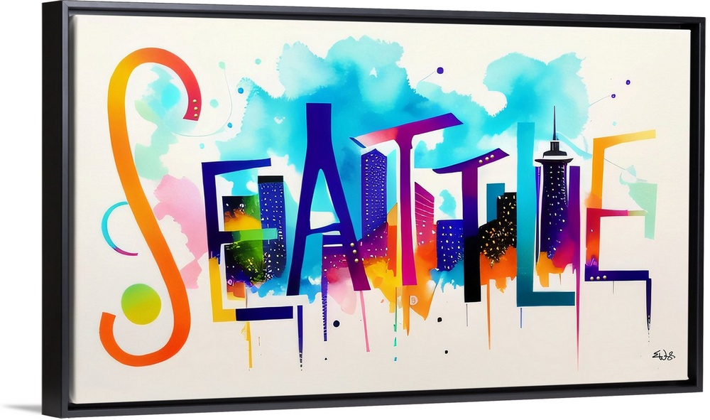 Art Cityscapes Graphic Art Multicolor Wall Art Washington Seattle Typography & Calligraphy Eric Waugh