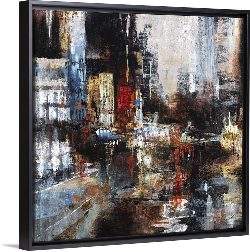<p>Contemporary painting of a busy city scene with skyscrapers.</p>