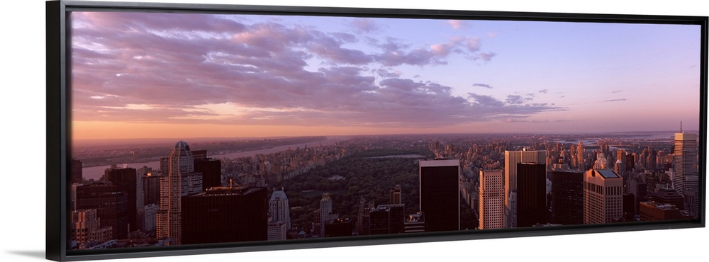 <p>Panoramic photograph of the New York City skyline showing Central Park just behind the buildings in the foreground.</p>