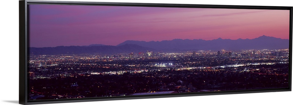 <p>The city of Phoenix is illuminated under a dusk sky and shot in a panoramic view to show majority of the city.</p>