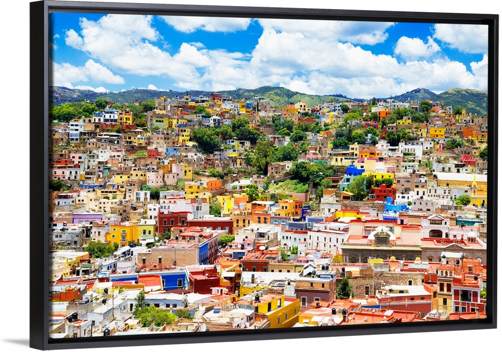 <p>Aerial photograph of the city of Guanajuato, Mexico, with colorful buildings and mountains in the background. From the Viva Mexico Collection.</p>