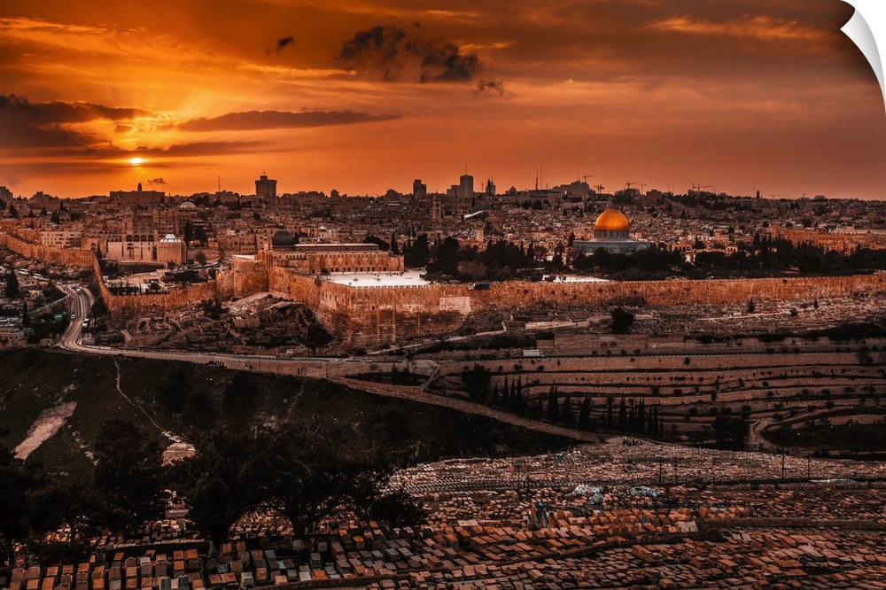 <p>Cityscape of Jerusalem at sunset; Jerusalem, Israel.</p>