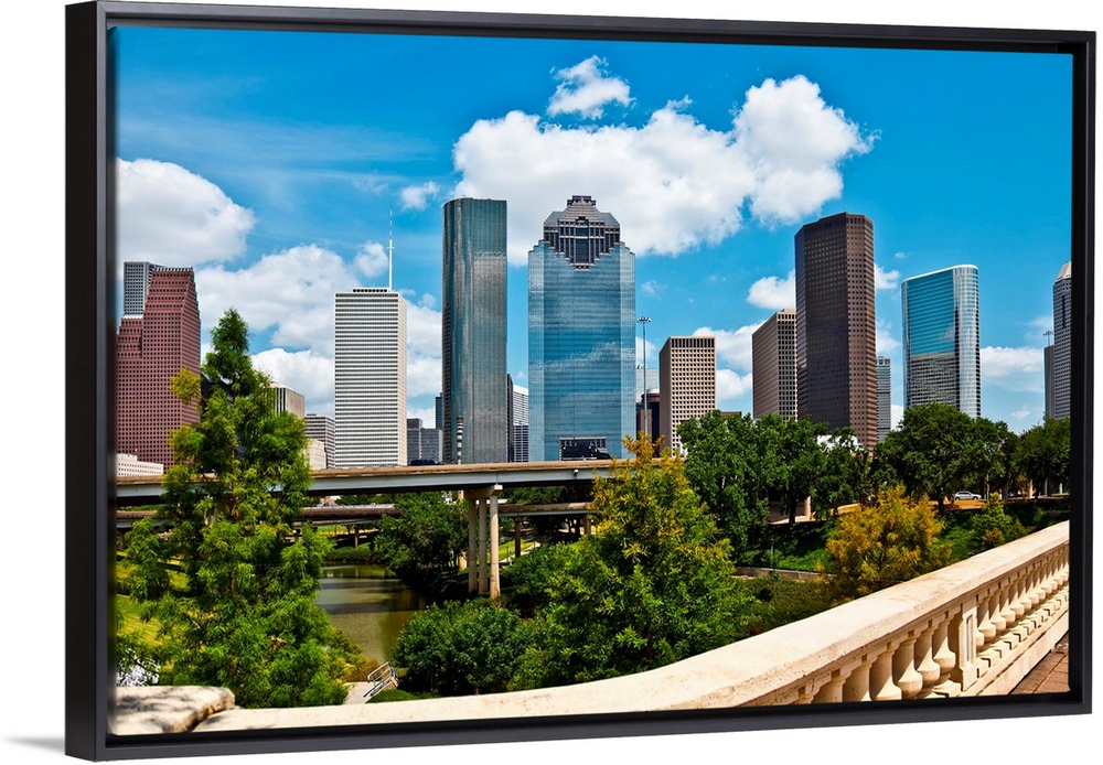 <p>a crisp cityscape of the downtown Houston Texas skyline on a nice summer day</p>