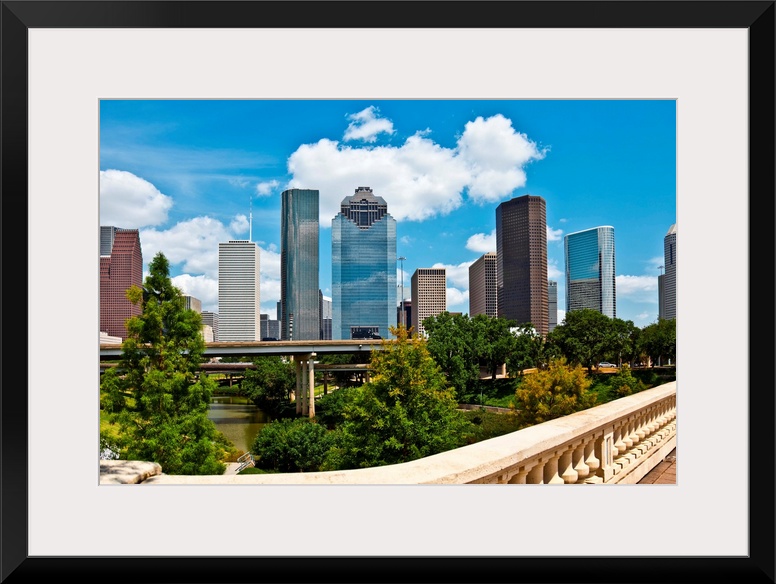 <p>a crisp cityscape of the downtown Houston Texas skyline on a nice summer day</p>