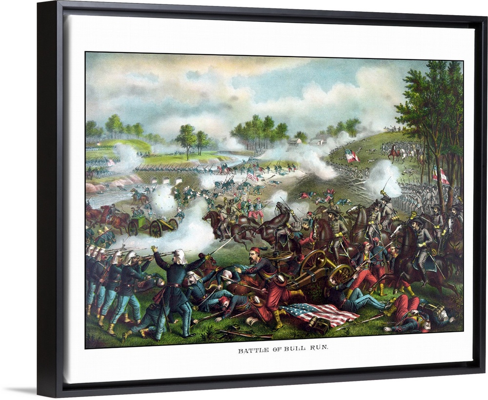 <p>Vintage Civil War painting of Union and Confederate troops fighting at The Battle of Bull Run, also known as The Battle of Manassas.</p>