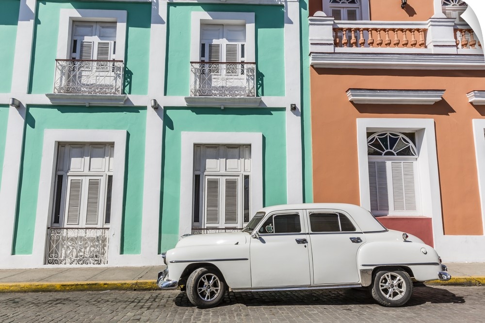 <p>Classic 1950s Plymouth taxi, locally known as almendrones in the town of Cienfuegos, Cuba, West Indies, Caribbean</p>