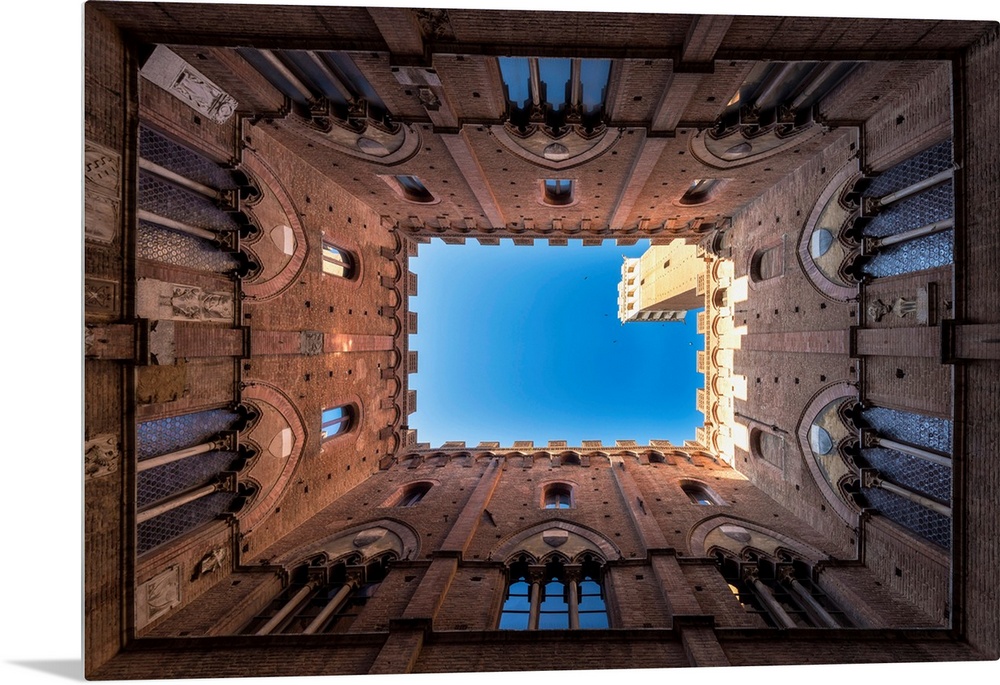 <p>Siena, Tuscany, Italy, Europe. Classic Bottom View Of Palazzo Pubblico With Del Mangia's Tower At Dawn</p>