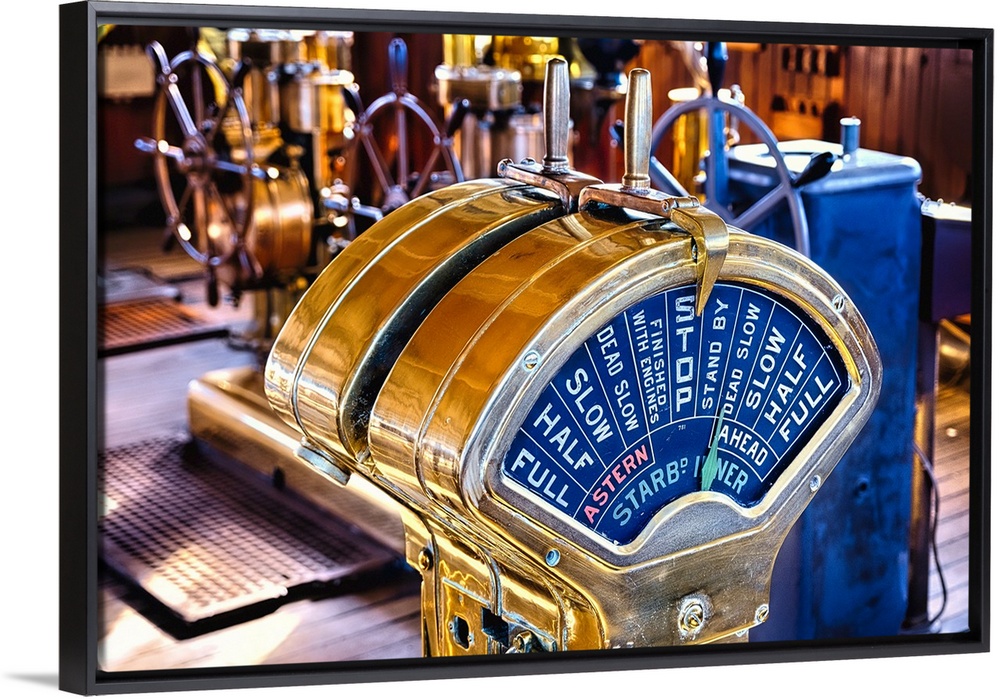 <p>Close Up View of a Classic Brass Chadburn of the RMS Queen Mary Ocean Liner.</p>