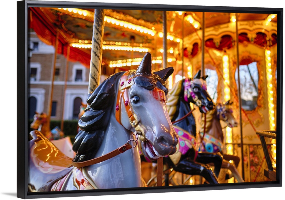 <p>Close Up View of Horses on a Classic Carousel, Rome, Italy</p>