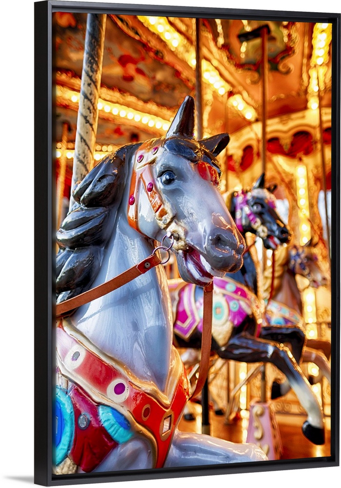 <p>View of Horses on a Classic Carousel, Rome, Italy</p>