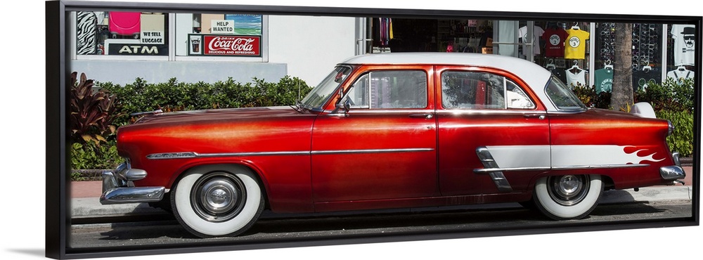 <p>A bright red vintage car in Miami, Florida.</p>