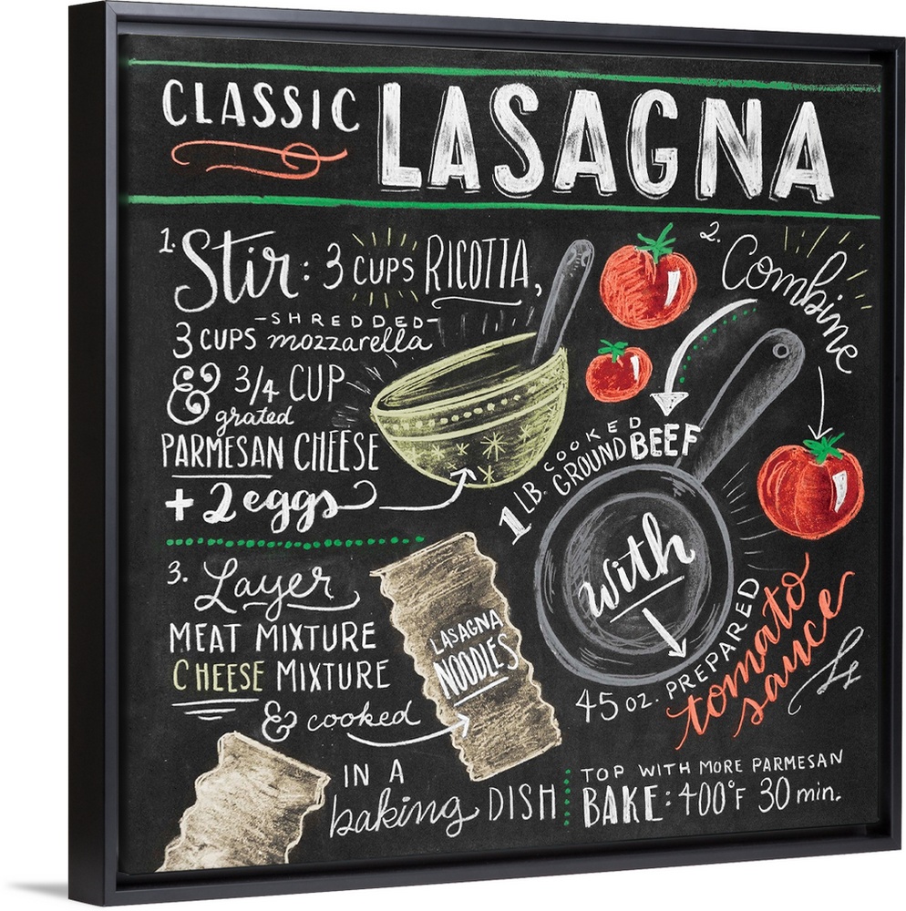 Art Kitchen Wall Art Chalkboard Art Drawing Food and Drink Food Pasta Italian Illustrated Recipes Typography & Calligraphy Lily and Val
