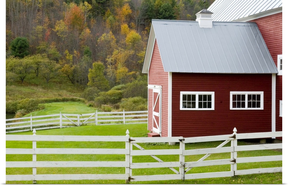 <p>Classic New England farm with red barn and white fence. Vermont. USA</p>