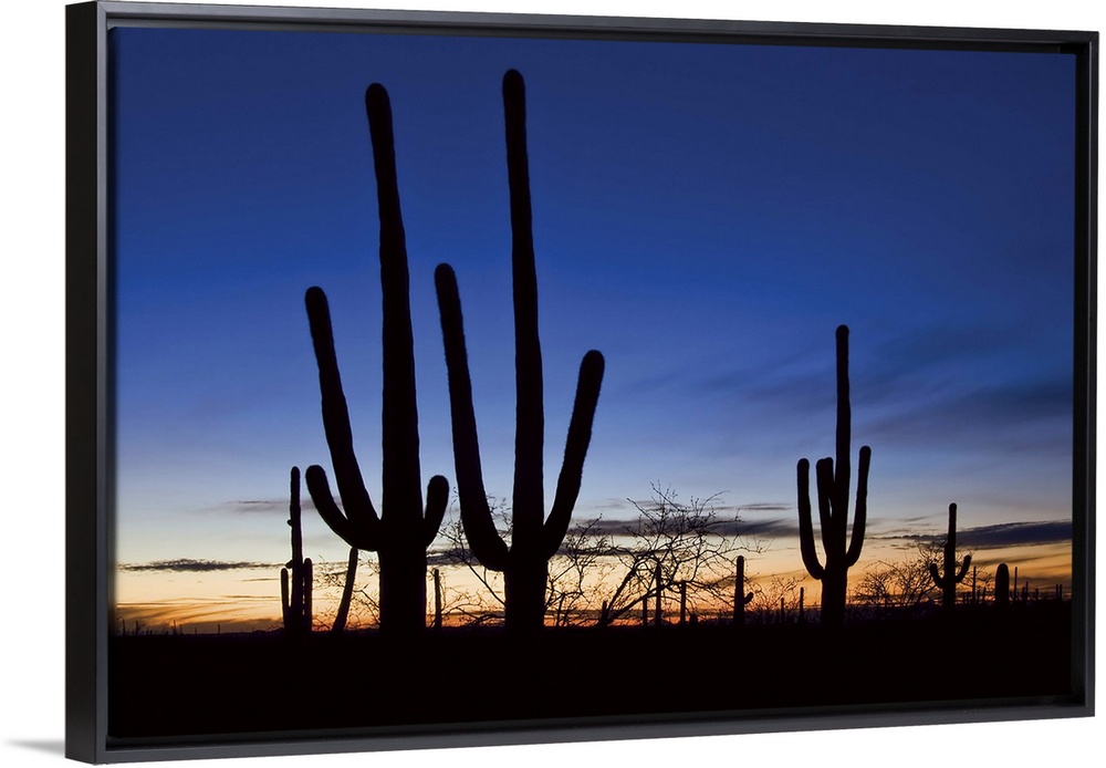 <p>Saguaro cacti at sunset in Saguaro National Park, Arizona</p>