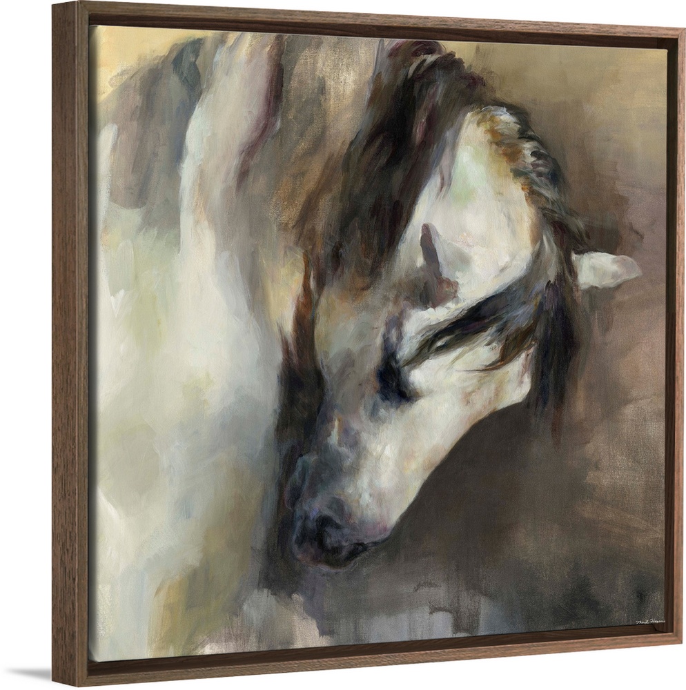 <p>Square abstract painting of a horse in neutral colors.</p>