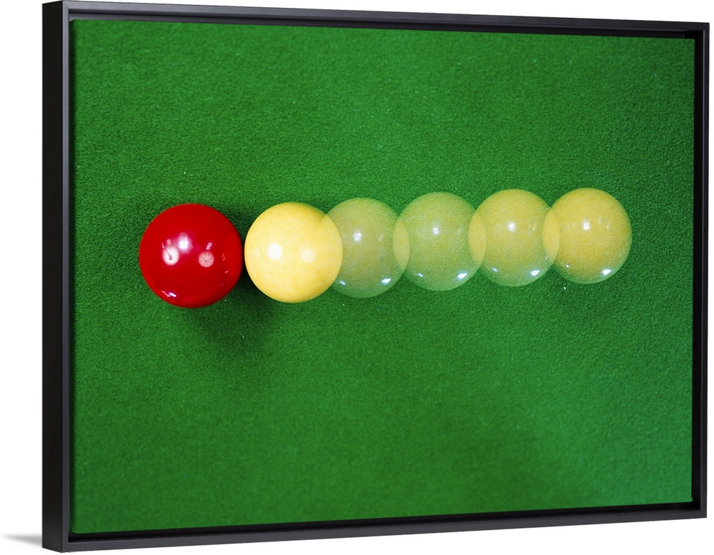 <p>Billiard balls colliding, demonstrating principles such as conservation of momentum, and Newton's Laws of Motion.</p>