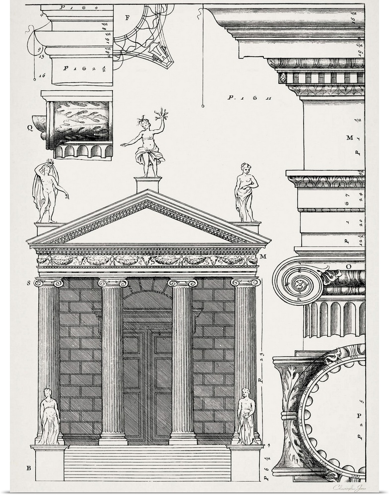 Architecture Columns Art Blueprints Decorative Art Drawing Grey Wall Art Illustrations Christopher James