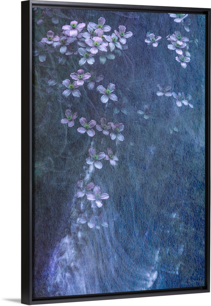 <p>A soft impressionistic cascade of gentle lavender and blue purple Clematis flowers with silvery movement lines.</p>