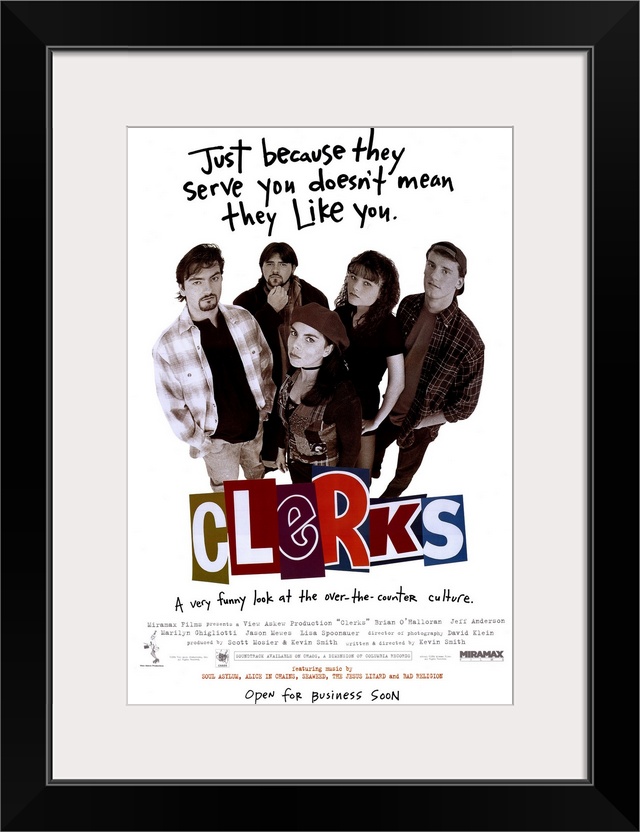 <p>What kind of convenience store do you run here? Day in the life of a convenience store clerk is an often hilarious lesson in the profane from first time writer/director Smith (who has a cameo as Silent Bob). Twenty-two-year-old Dante Hicks (O'Halloran) is a disaffected New Jersey Quick Stop employee who spends most of his time bored and dealing with borderline crazies. The next-door video store is clerked by his best friend Randal (Anderson), who derives equal delight from tormenting his customers and debating absolutely anything (especially anything sexual). Nothing much actually happens but the very low-budget ($27,575) production has a decidedly scuzzy charm and a cult following. Based on the director's four years of clerking at the Quick Stop and shot on location.</p>