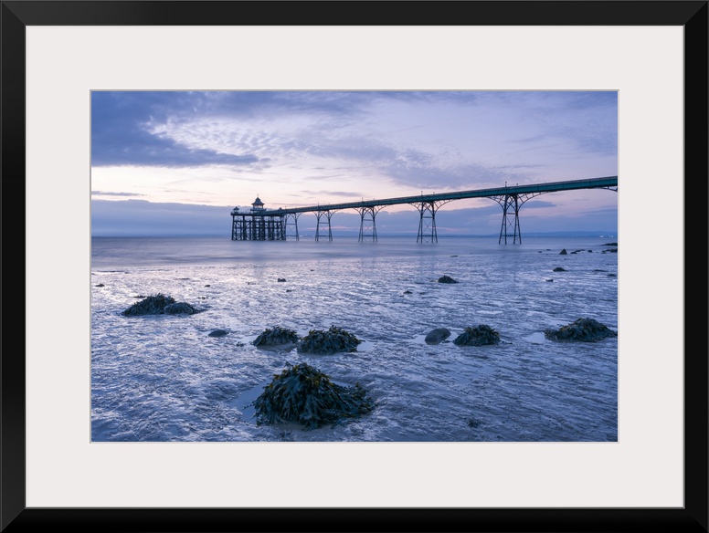 <p>Clevedon Pier in the Severn Estuary at low tide after sunset.</p>